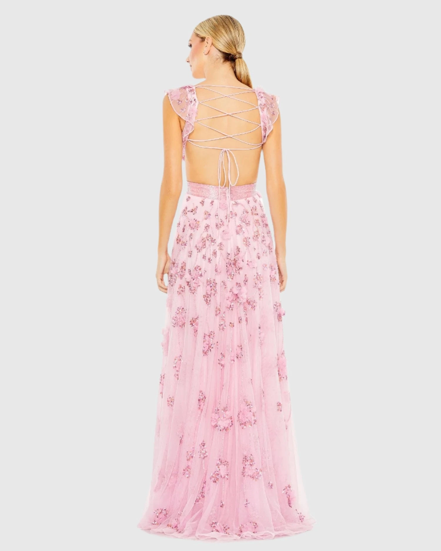 Embellished Lace Up Flowy Gown