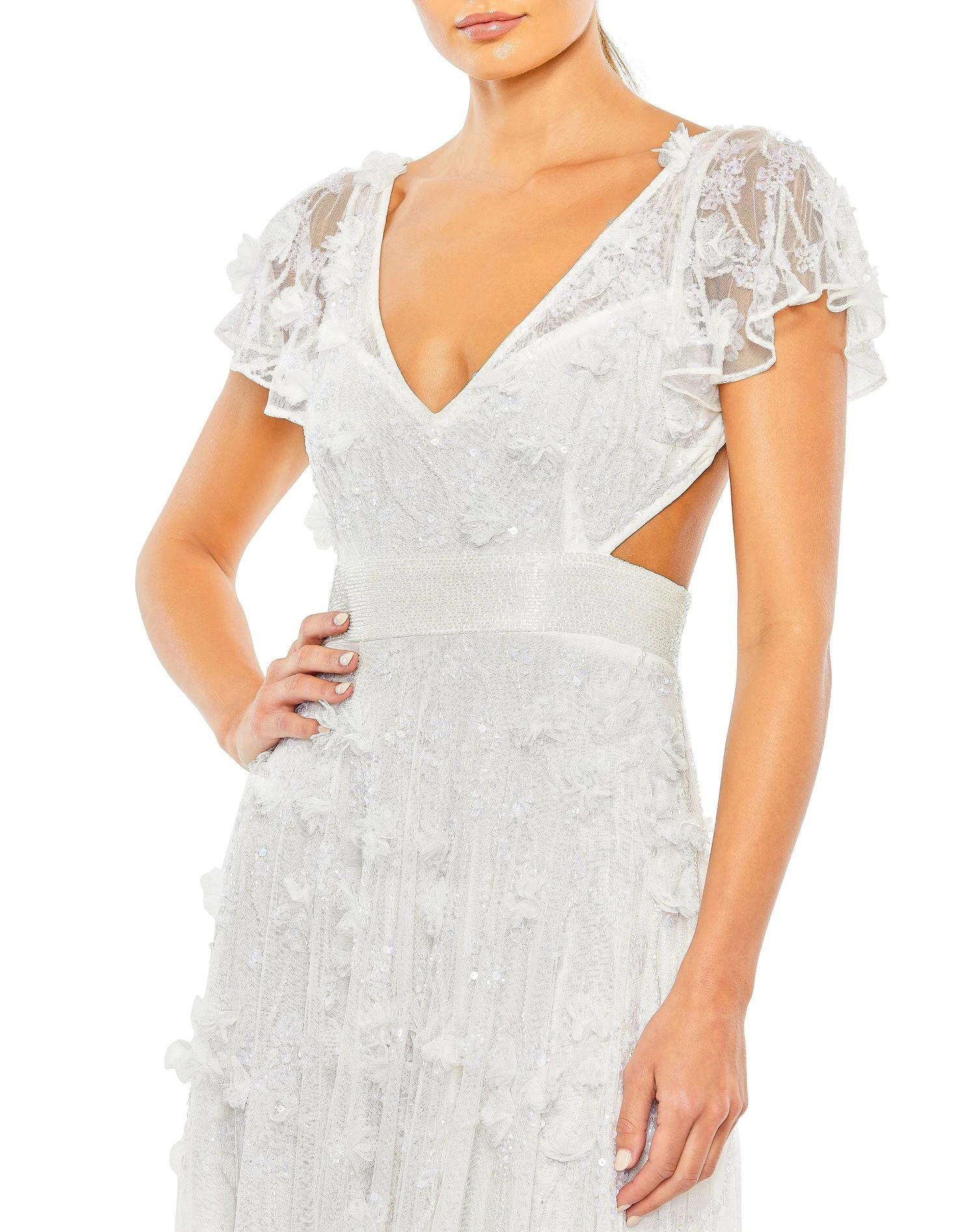 SKU: BWFJZ 7369861005491 Category: Evening Gowns Tags: Beaded, Bridal, Cut Out, Cut-Outs, Flutter Sleeve, Flutter Sleeves, Lace Up, Maxi & Floor Length, Open Back, PAS, Price 501-700, PROM23, V-Neck