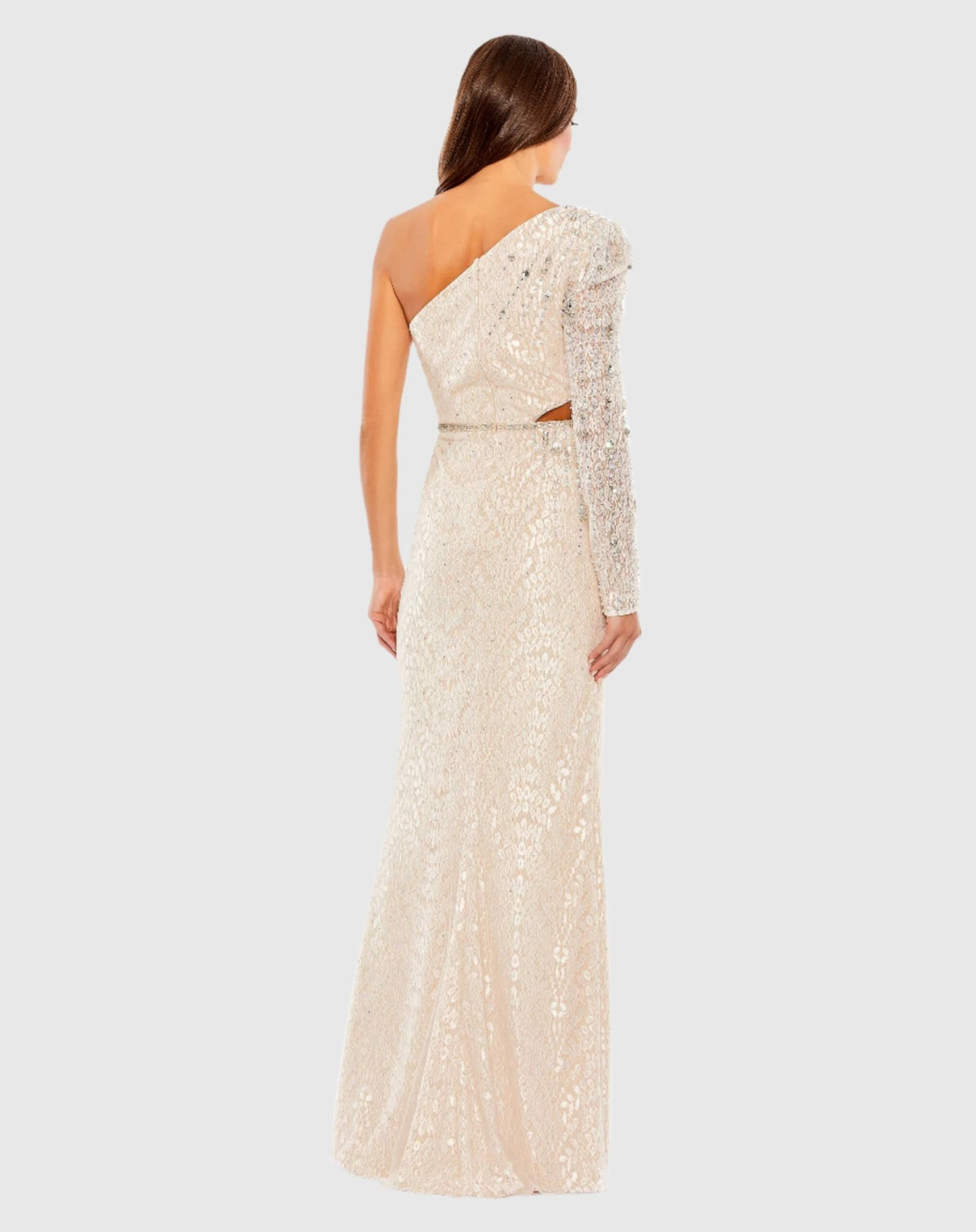 Be the first to review “Embellished One Sleeve Cut Out Gown” Cancel reply