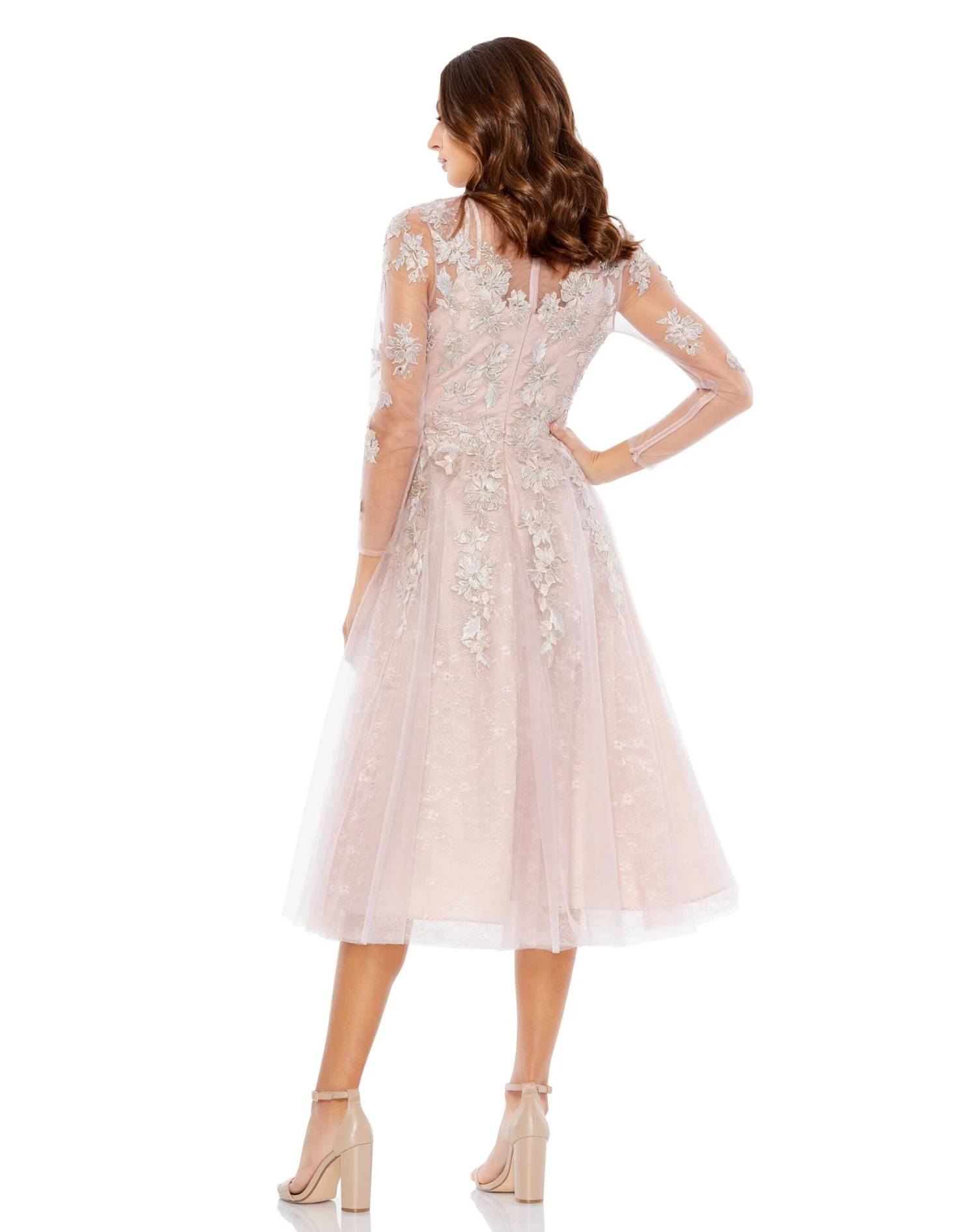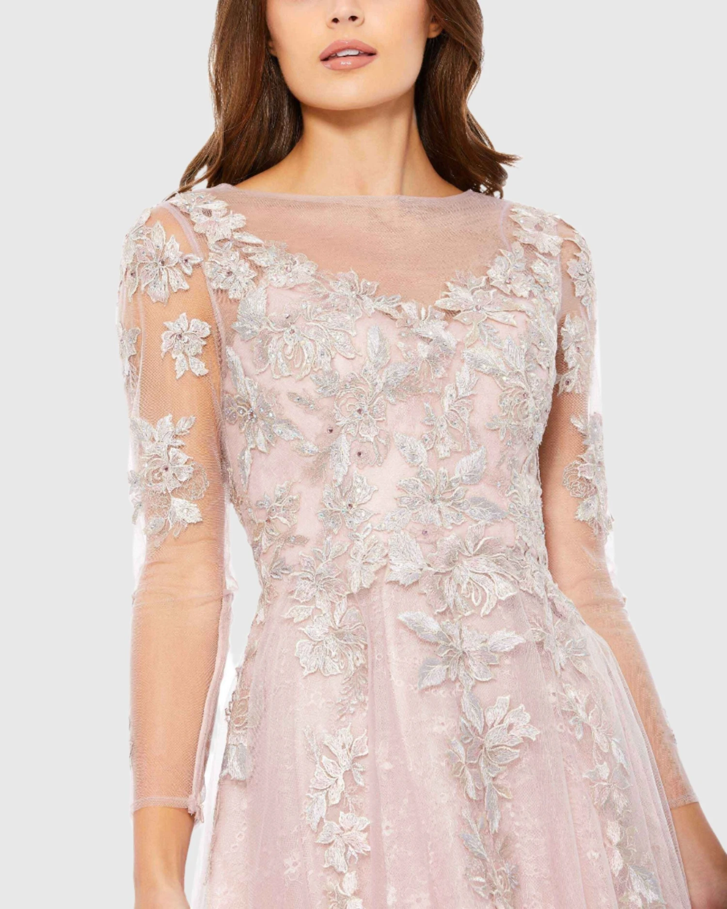 Embroidered Illusion Long Sleeve A Line Dress