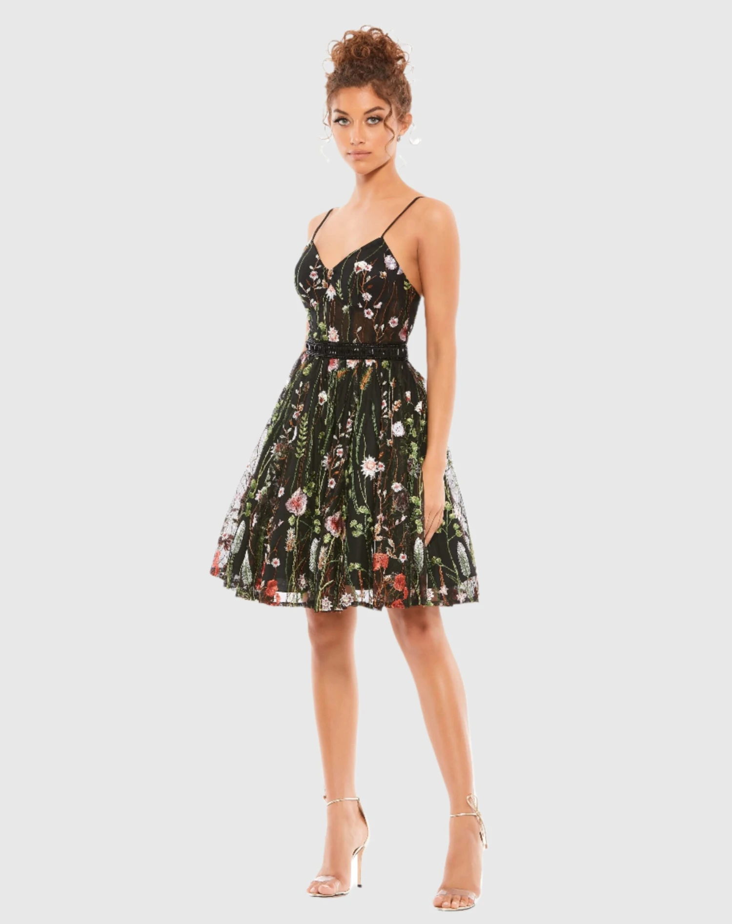 FLORAL EMBROIDERED BUSTIER A-LINE DRESS