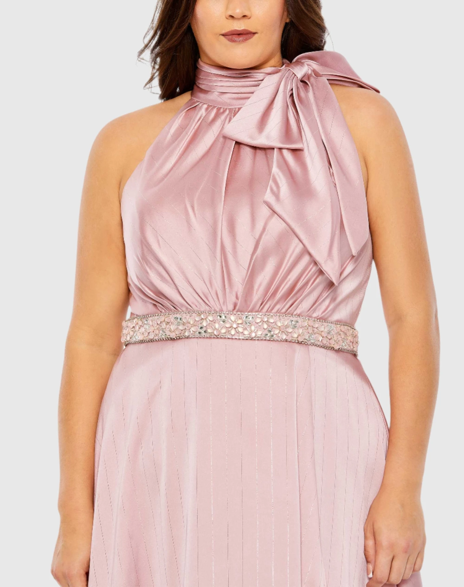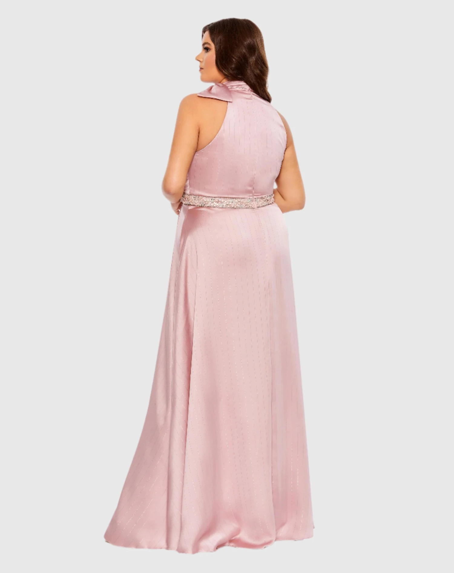 High Neck Soft Tie Beaded Belt Gown (Plus)