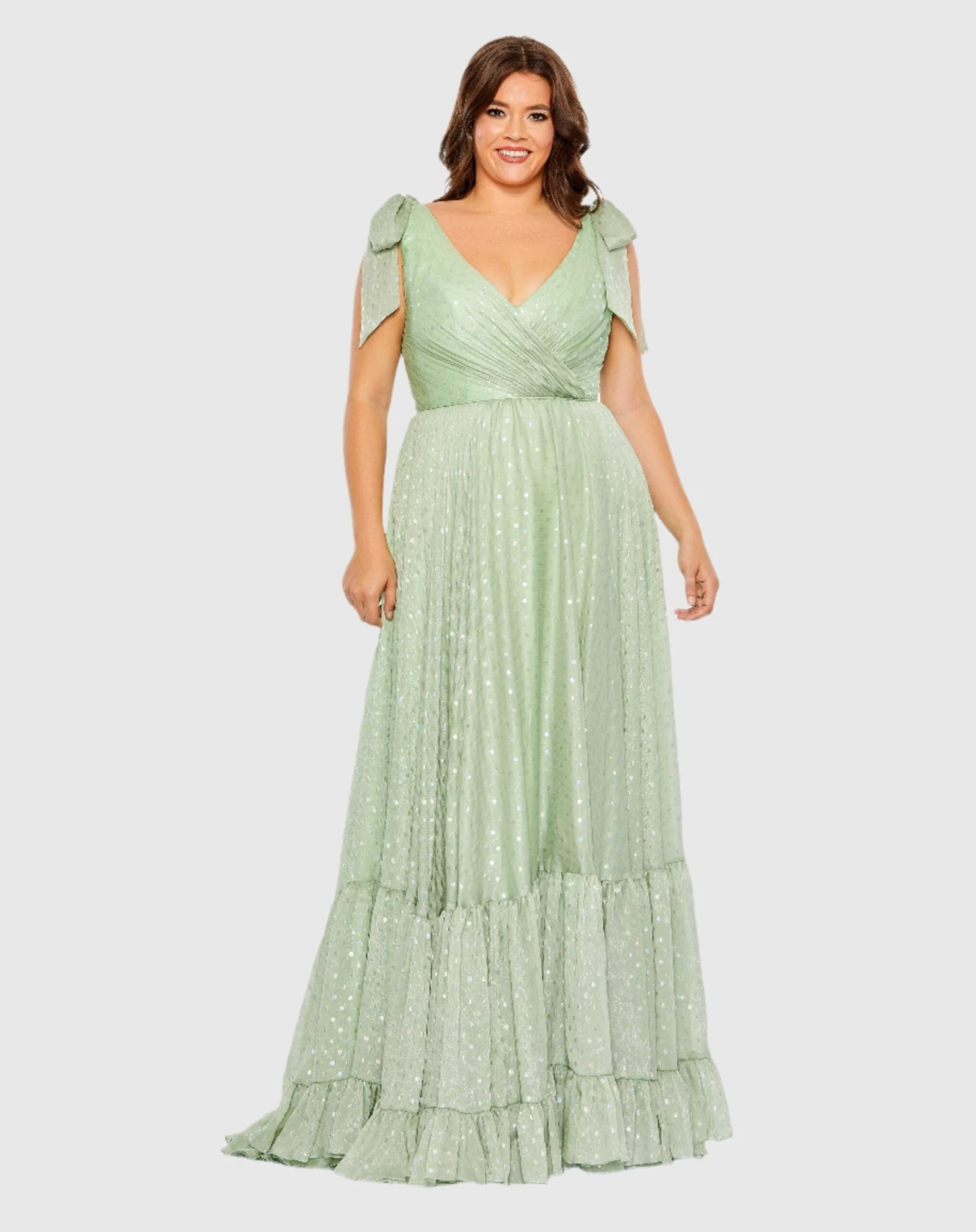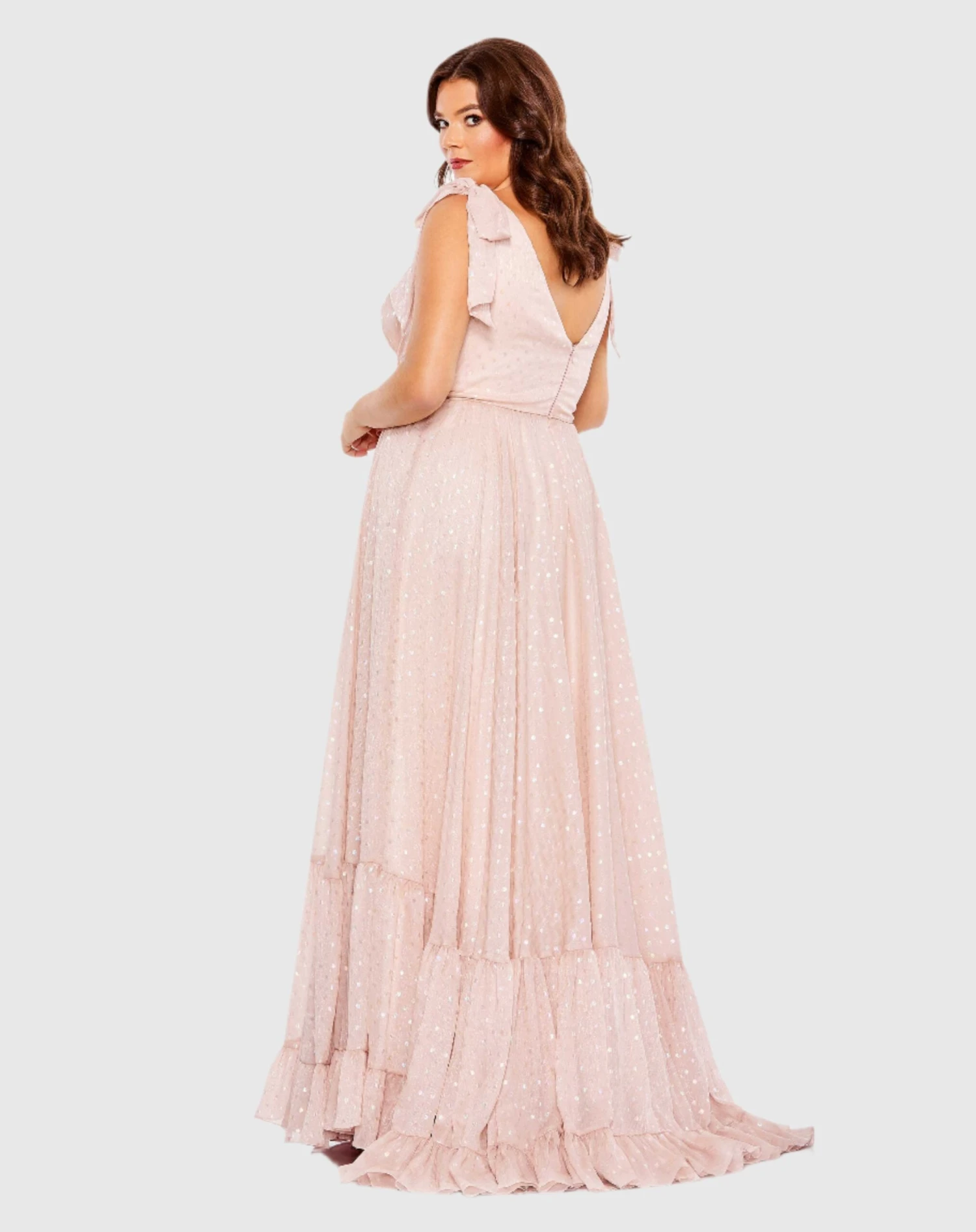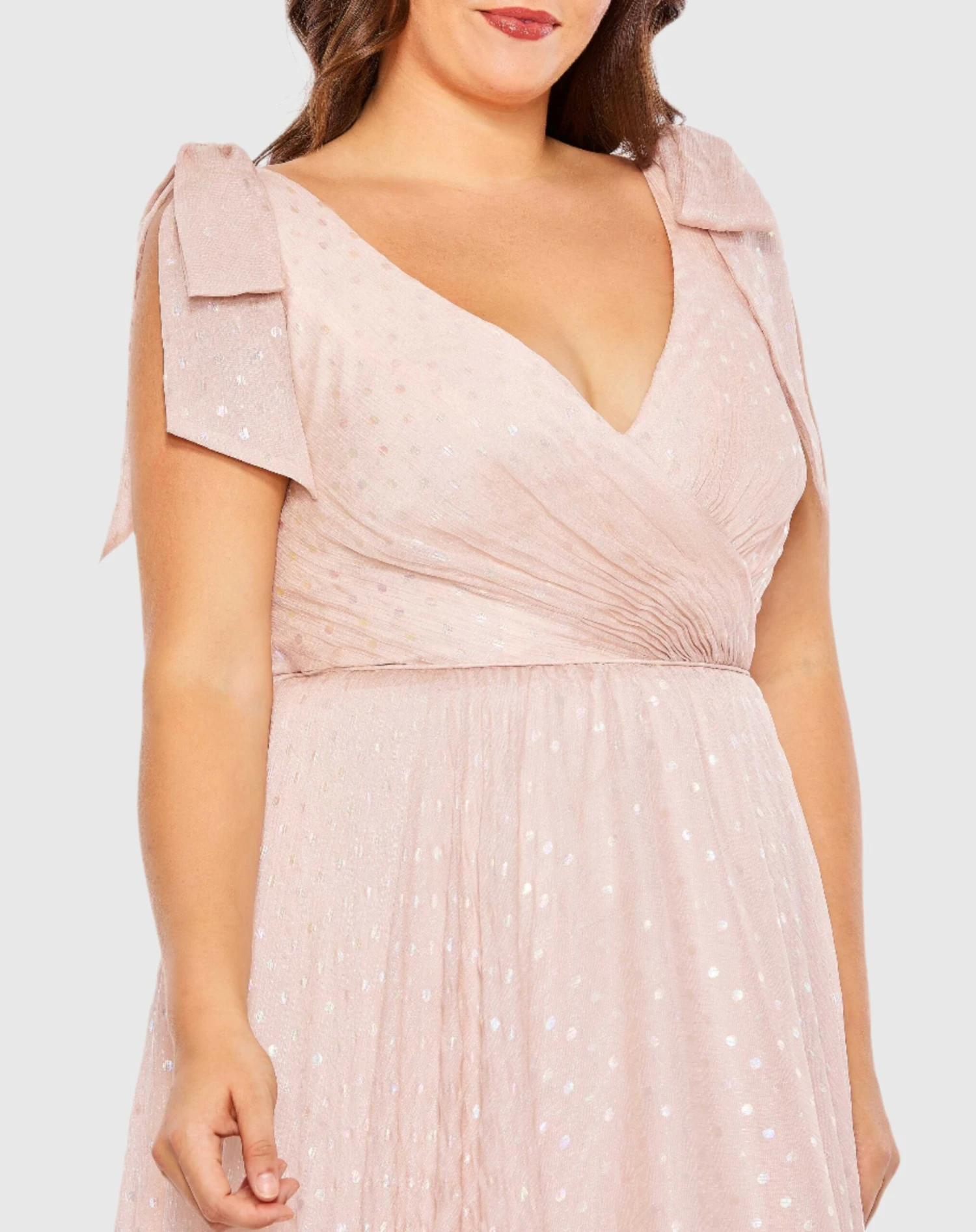 Iridescent Polka Dot Soft Tie Sleeveless Gown (Plus)