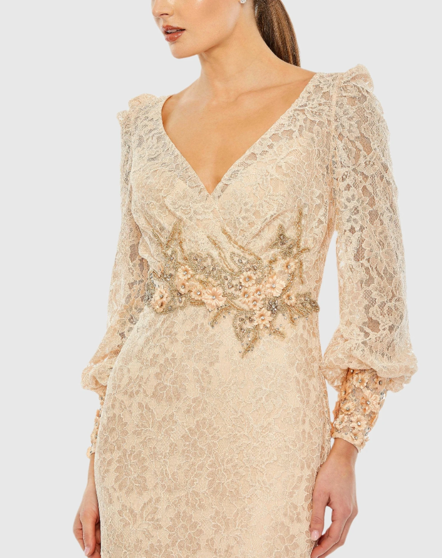 Be the first to review “Lace Long Sleeve V Neck Embellished Gown” Cancel reply