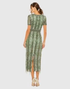 High Neck Sleeveless Sequin Embellished Trapeze A Line Dress