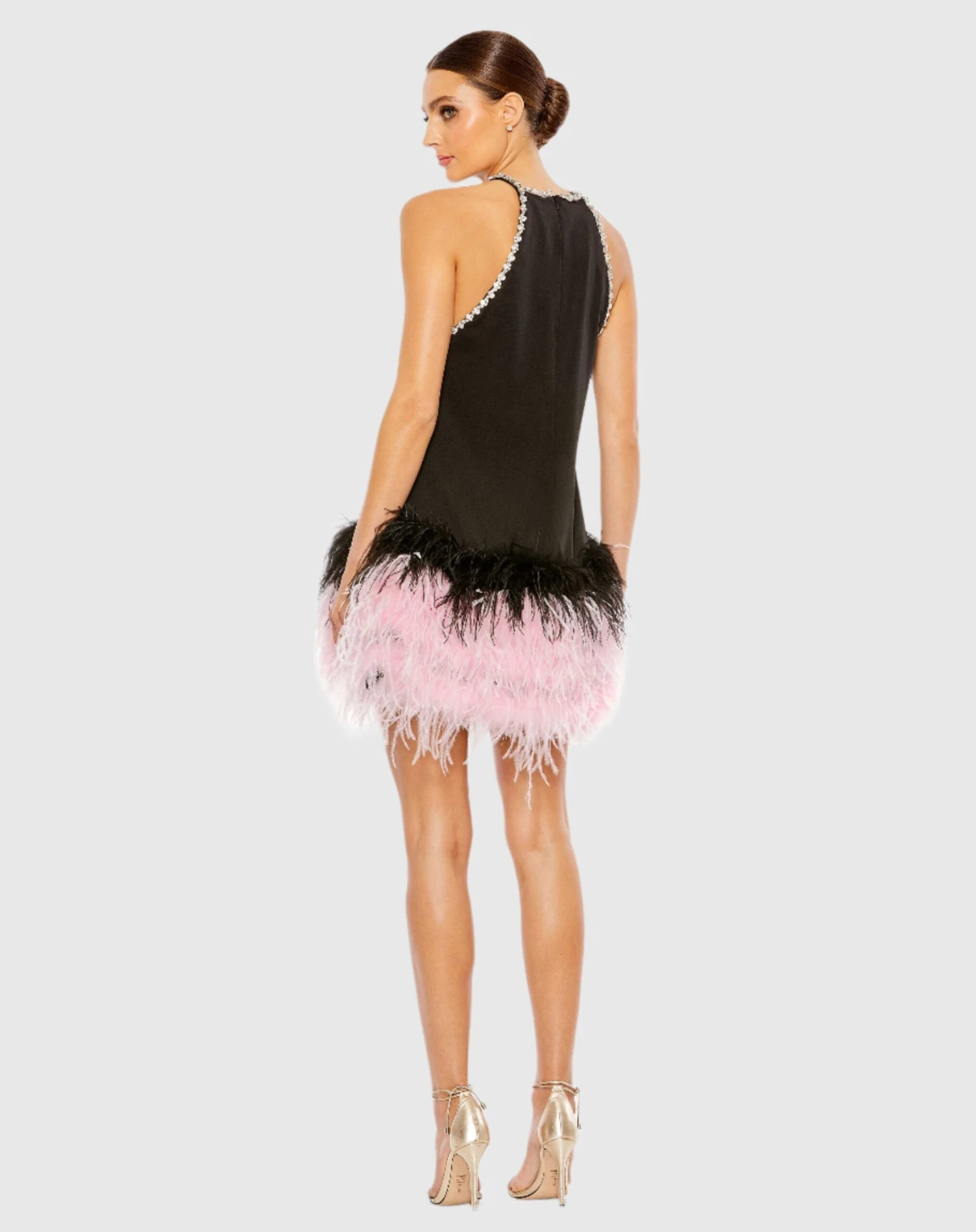 SKU: BWFJZ 7294886871219 Category: Cocktail Dresses Tags: BFEX, Cocktail, Cocktail Length, Feather, Feathers, Halter, Mini, Price 501-700, Rhinestone & Jewels, Sleeveless, Valentine's Day, Vday