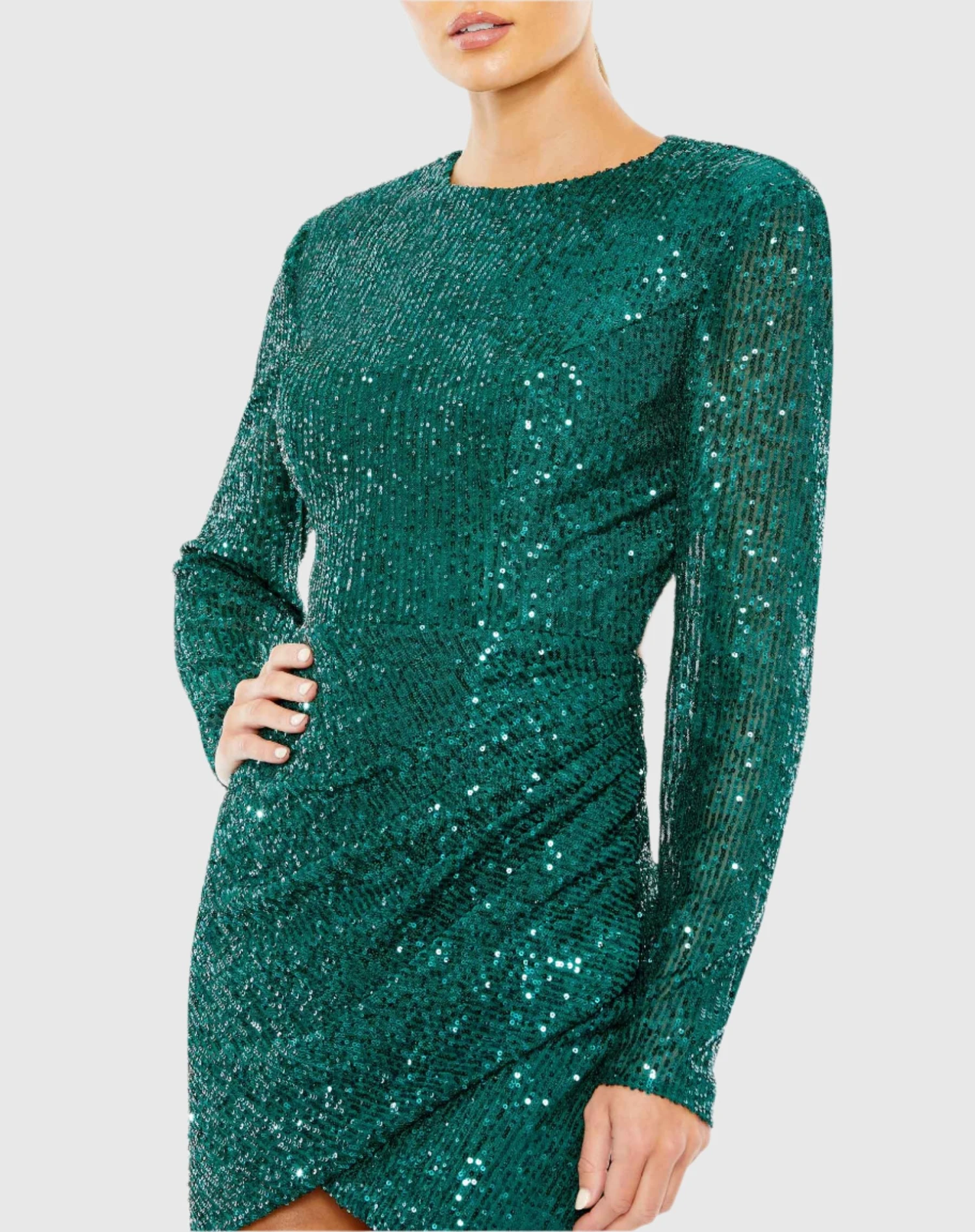 Be the first to review “Sequined Long Sleeve Open Back Ruched Dress” Cancel reply