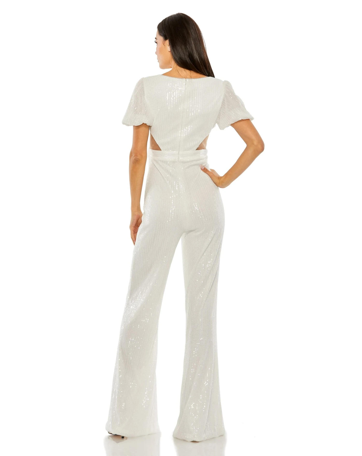 Sequined Puff Shoulder Illusion Cut Out Jumpsuit | Sample | Sz. 2