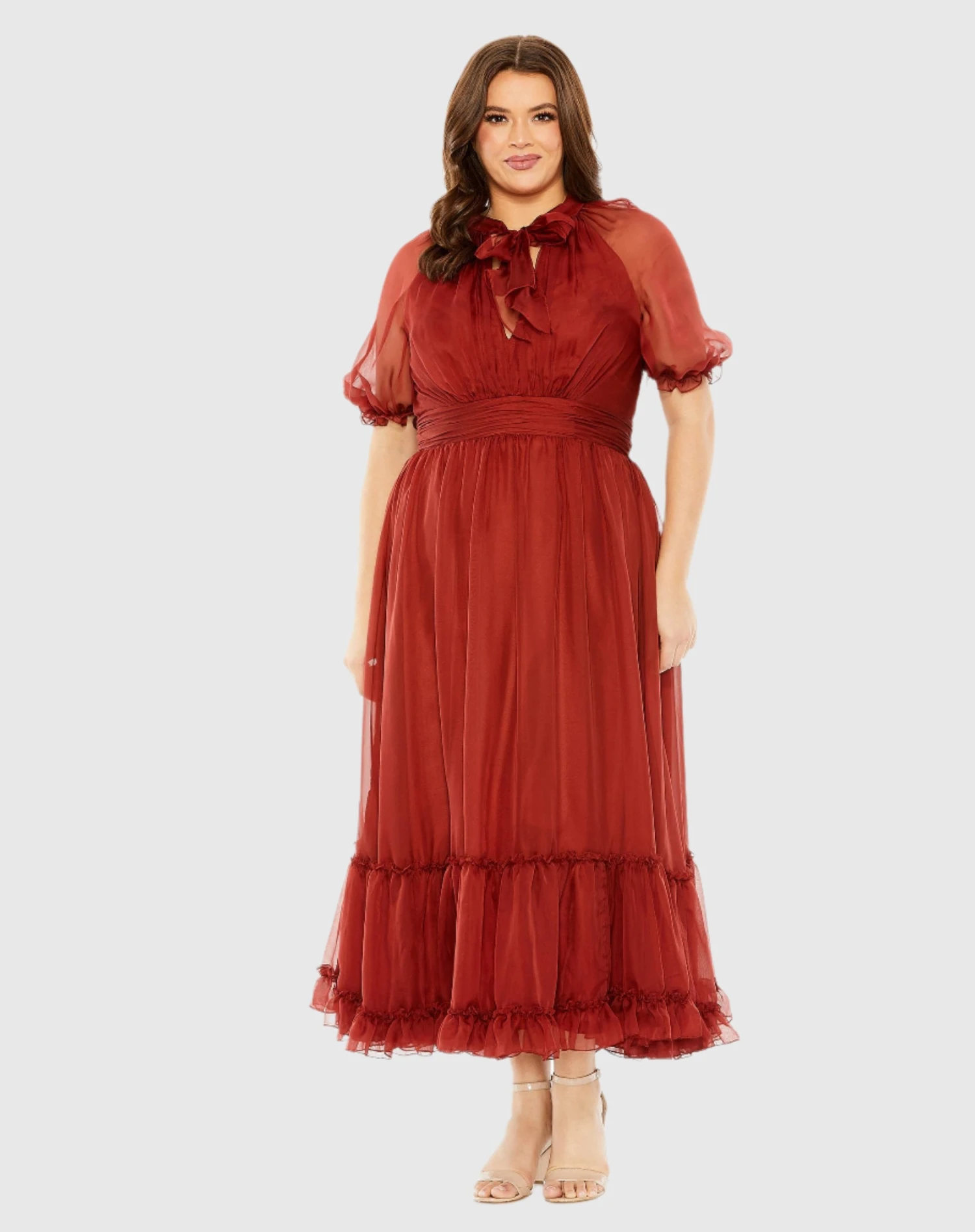 SKU: BWFJZ 7422041784499 Category: Cocktail Dresses Tags: Chiffon, Cocktail, High Neckline, Key Hole, Midi, Midi & Tea Length, Plus, Price 301-400, Ruffle, Short Sleeve, Spring, Summer Cocktail, Summer wedding, Wedding Guest