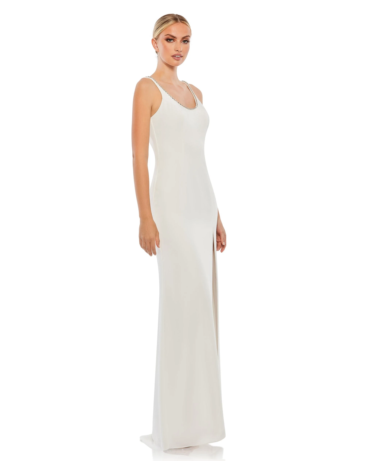 Sleeveless Crystal Scoop Neckline Column Gown