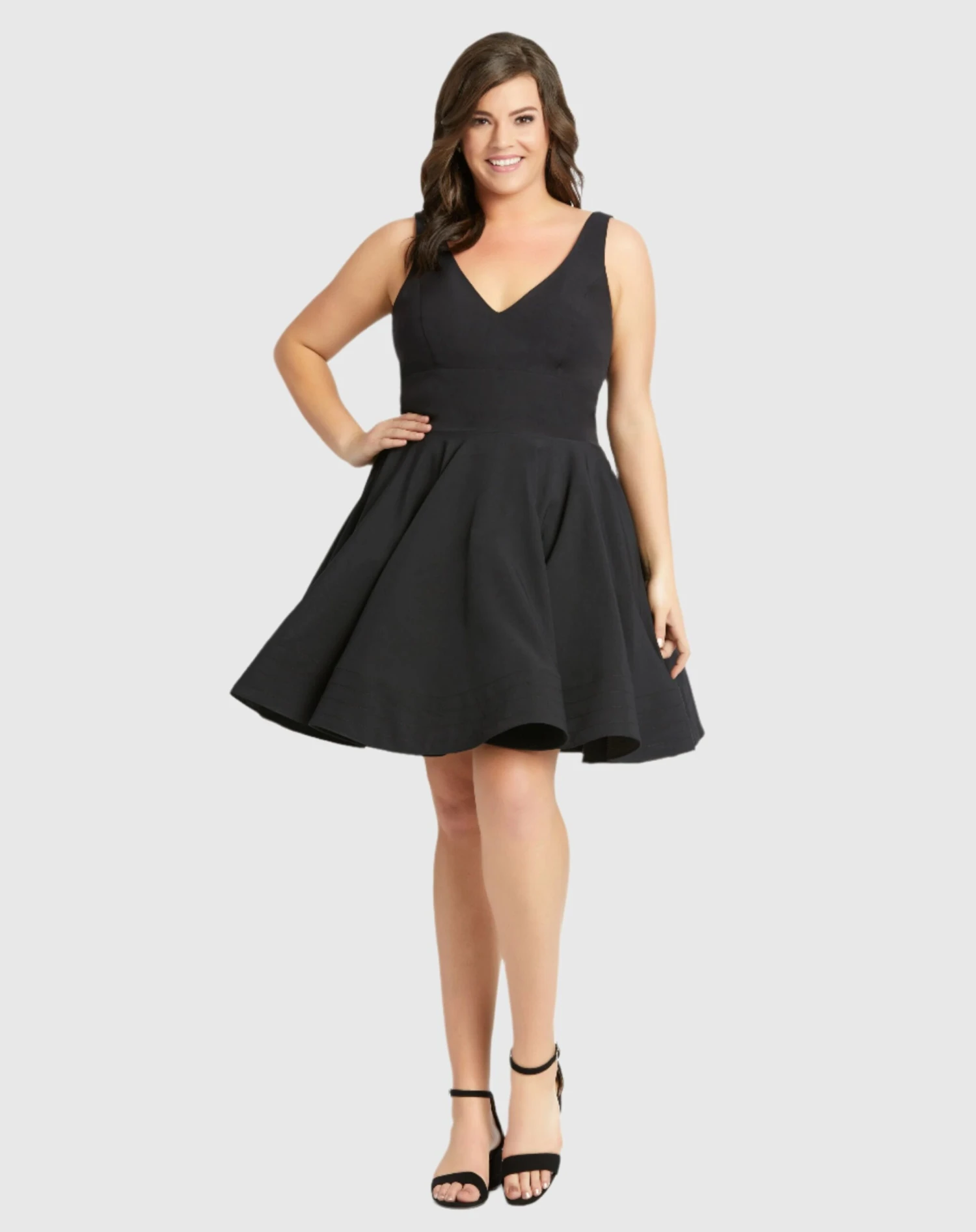 Sleeveless V Neck Fit & Flare Mini Dress (Plus)