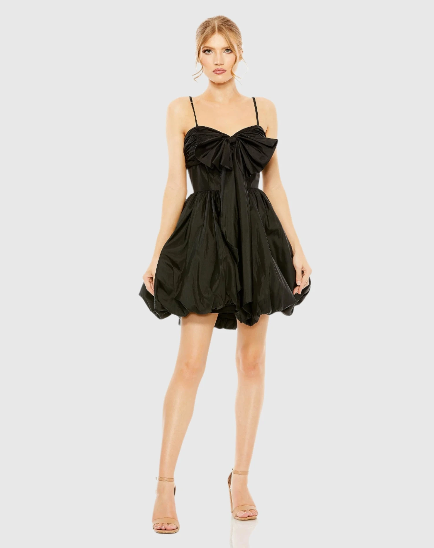 Spaghetti Strap Center Bow Balloon Mini Dress